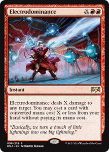 This is more of a strategy suggestion that anything else, but it may shape how you want to choose cards. Chandra’s -2 ability does not directly cast the spell. Rather, it gives you the ability to cast the spell from the graveyard. Some may see this as a downside, but I see this an opportunity to exploit. How? You can cast X spells. A lot of X spells in red are under 3 CMC. When you cast them late game with Chandra’s -2, you’re not only able to cast them, but you are able to unload all the mana you’ve gathered for a blow out. Personal favorites of mine include Meteor Blast [], Electrodominance [] and Starstorm []. It's nice when you can assume that every Fireball [] type spell in your deck has flashback.